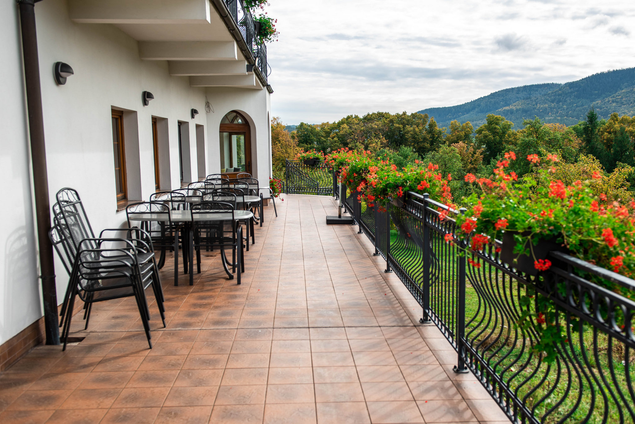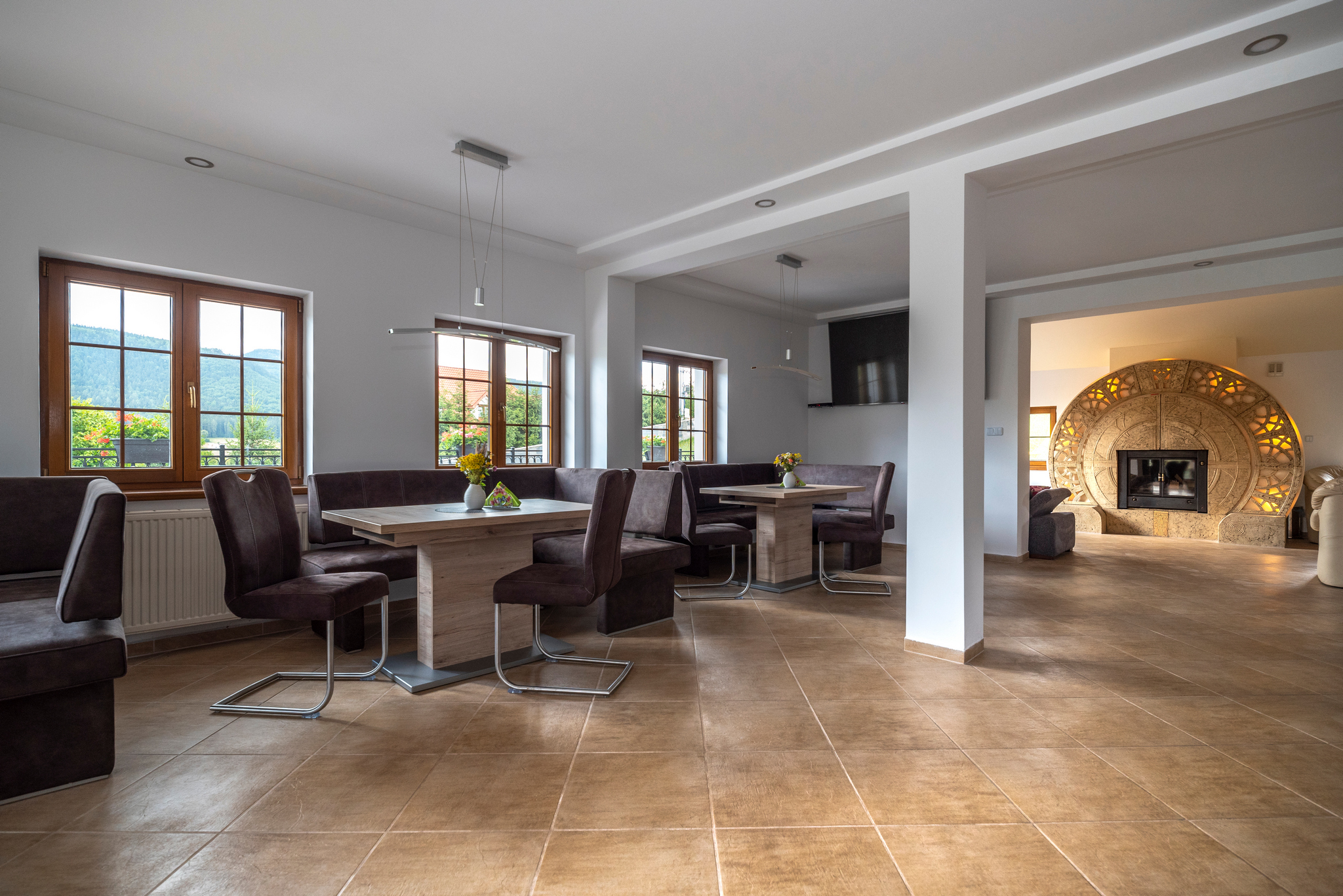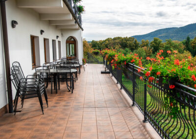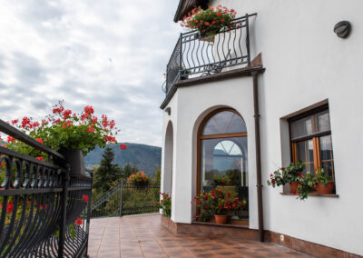 Dzięki wyjątkowej lokalizacji obiektu nasi Goście mogą rozkoszować się widokiem na panoramę Gór Stołowych od strony zachodniej, na stożkowatego Mnicha od południa oraz na pełnego zabytkowej architektury Radkowa od strony wschodniej.