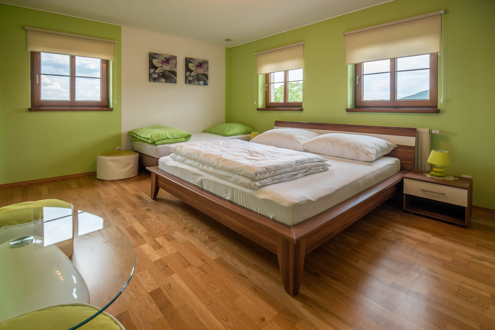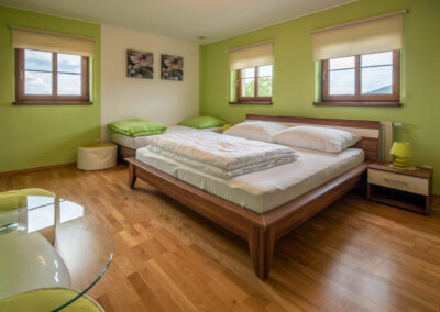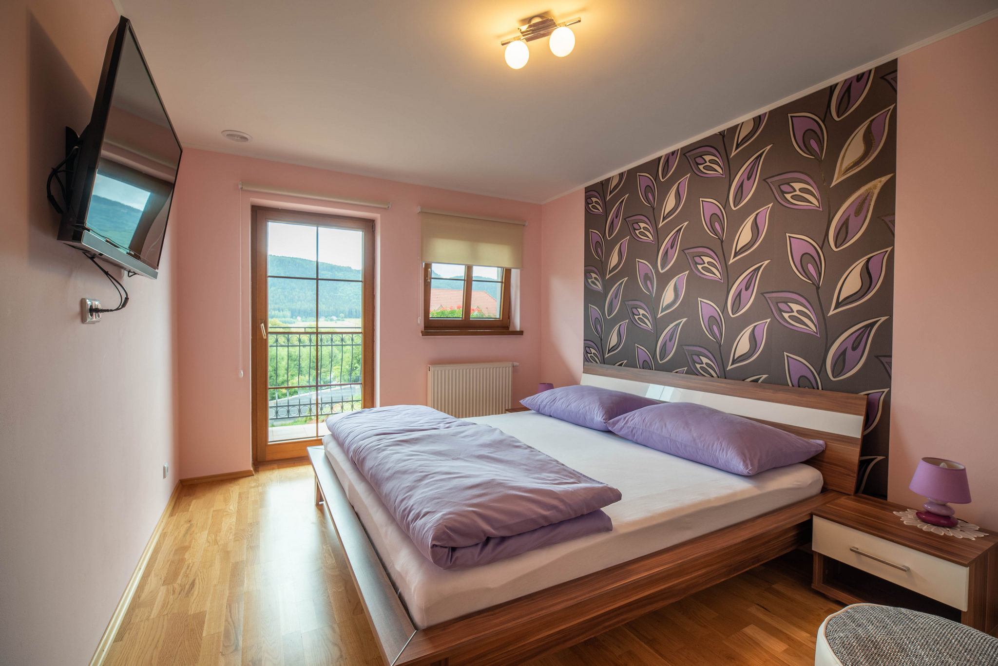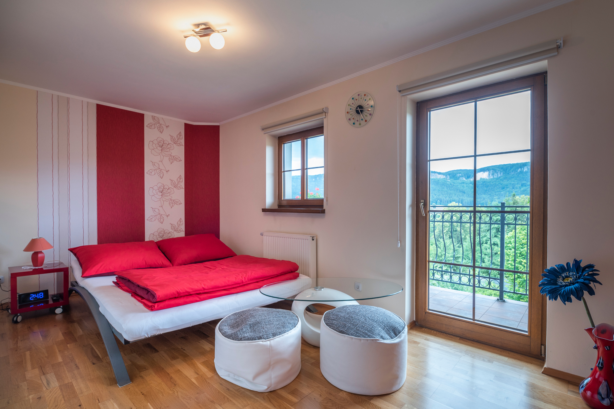 Przygotowaliśmy dla Państwa przestronne i gustowne pokoje gościnne z łazienkami oraz dostępem do tarasu z widokiem na góry.
